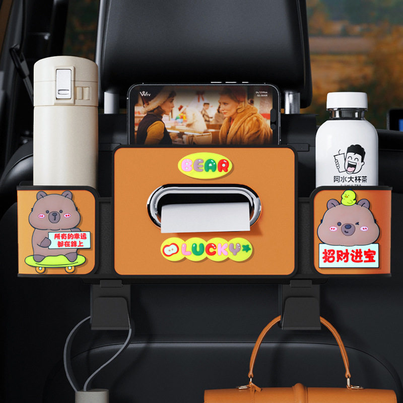 车载座椅后背收纳盒后排纸巾置物盒汽车后座椅背多功能水杯架挂钩