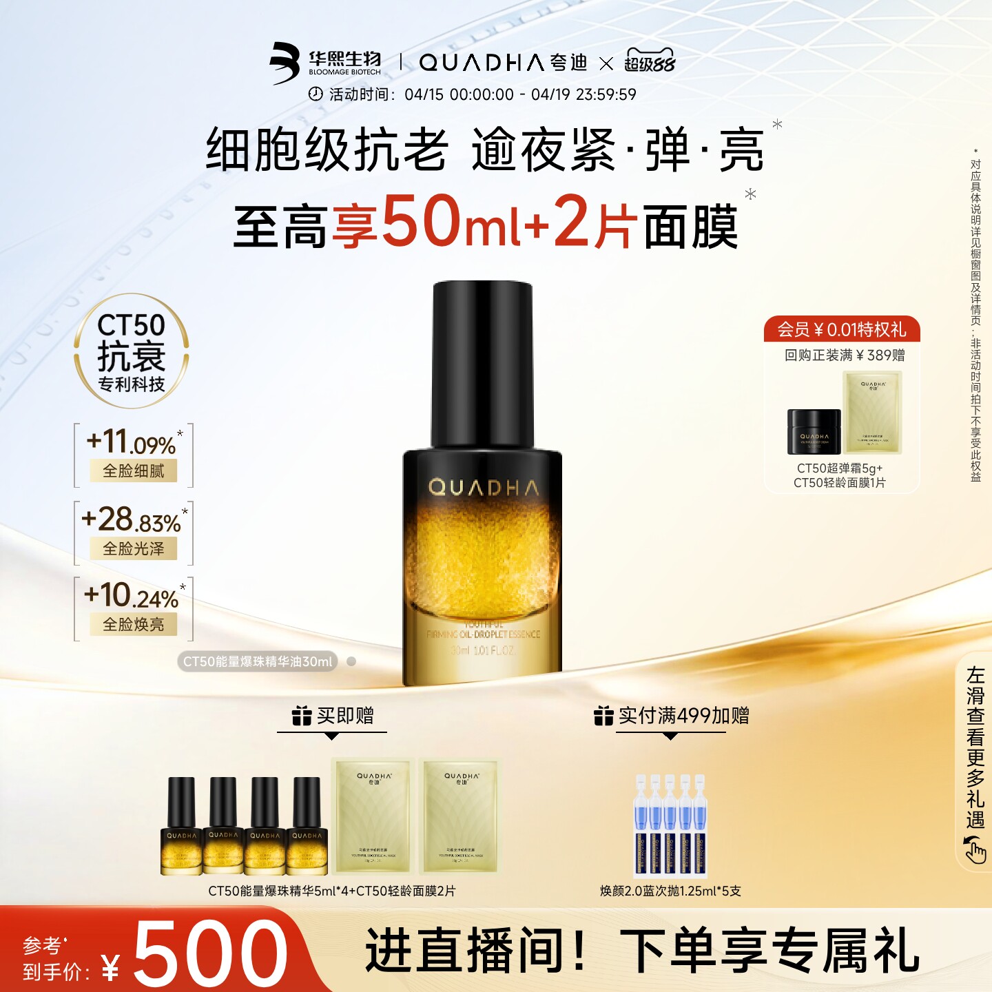 【立即抢购】华熙生物夸迪精华CT50能量爆珠精华油细胞级抗皱