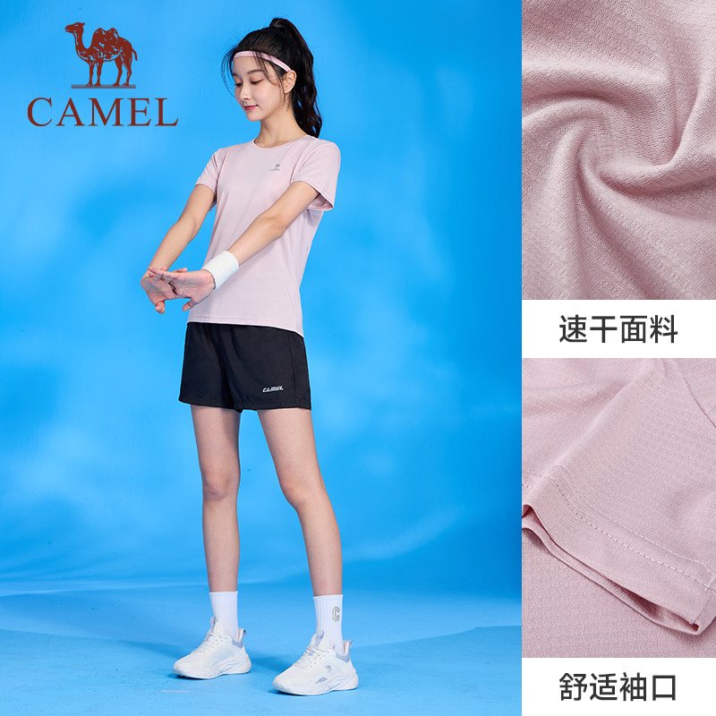 骆驼运动速干T恤短袖 春夏羽毛球户外跑步防晒登山健身瑜伽服上衣