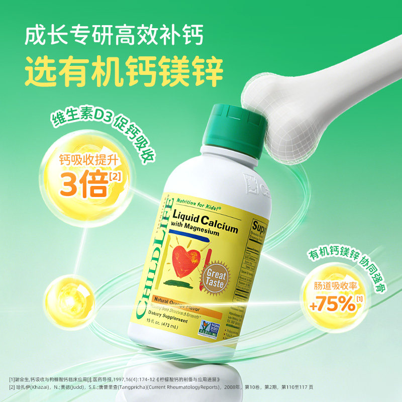 【自营】CHILDLIFE童年时光宝宝柠檬酸钙液体儿童钙镁锌一岁以上