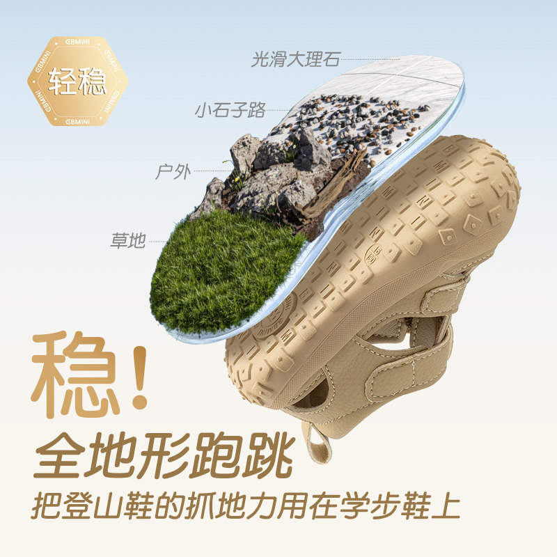 英贝米尼轻稳凉鞋,3D足弓支撑+超柔TPR软底,包头防护+透气网布,宝宝学步更稳更自在~150.9元入手高端婴童品牌夏季新款!轻至约120g,一脚蹬设计,穿脱不费力,妈妈省心**!给宝贝一双会呼吸的夏