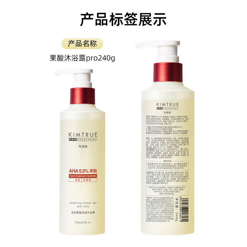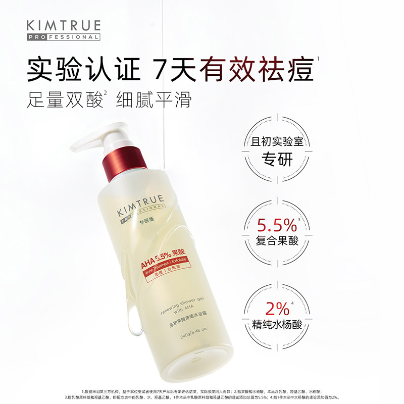 KIMTRUE且初果酸沐浴露PRO祛痘去角质保湿补水留香水杨酸沐浴液油