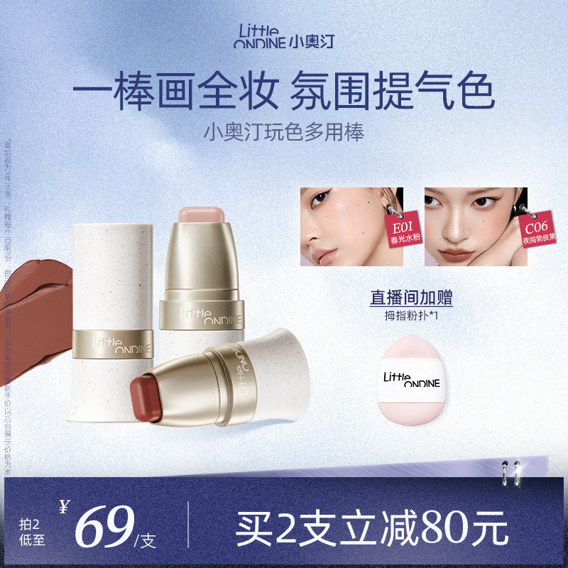 【活动价格109-30优惠券-5.09淘金币=73.91】小奥汀玩色多用棒,水润丝滑质地,四合一多功能,腮红、修容、眼影、唇膏全搞定,美妆必备!