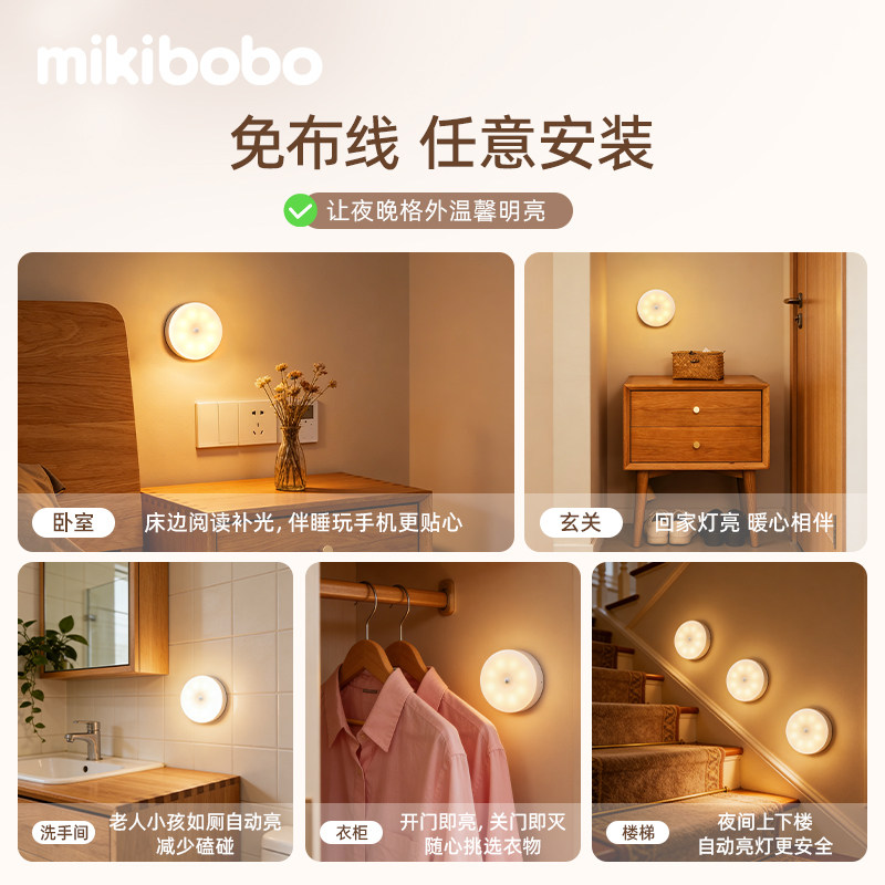 68¥ CZ193 YmQC5ft0uhD¥ https://m.tb.cn/h.iNApRqW mikibobo智能人体感应小夜灯2026新款磁吸充电led家用过道走廊灯A