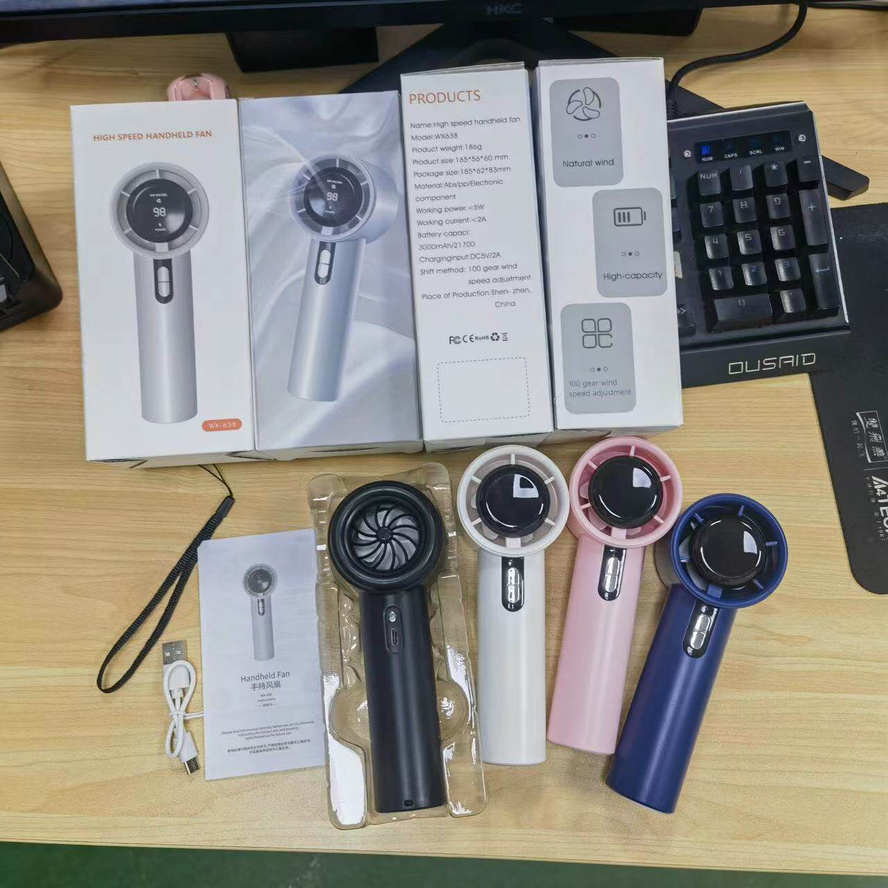 夏季必'备的手持小风扇!✔100档风力调节✔20h持久续航✔智能数显!出门携带方便,放桌面办公室!!轻巧便携,强劲风力!打开就是一股凉凉的风袭来,秒降温!!!!