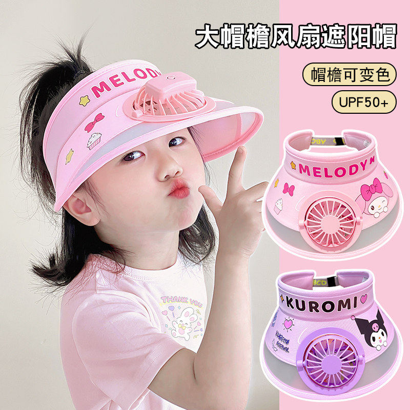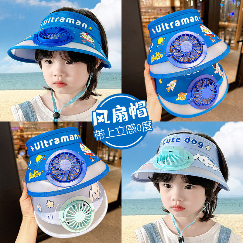 儿童风扇帽子遮阳帽空顶防晒帽男童女童新款夏季太阳帽男孩女孩