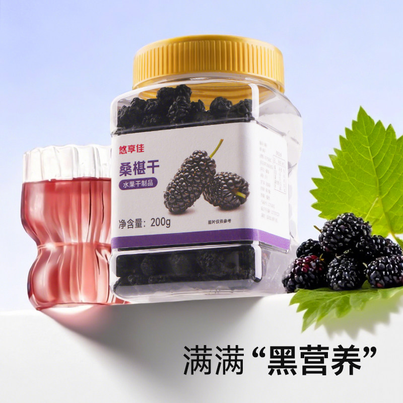 99¥ HU006 G9H254myilQ¥ https://m.tb.cn/h.imHlB7q 悠享佳四川大桑葚干果200g新鲜无沙干净黑桑椹干货泡茶特产零食