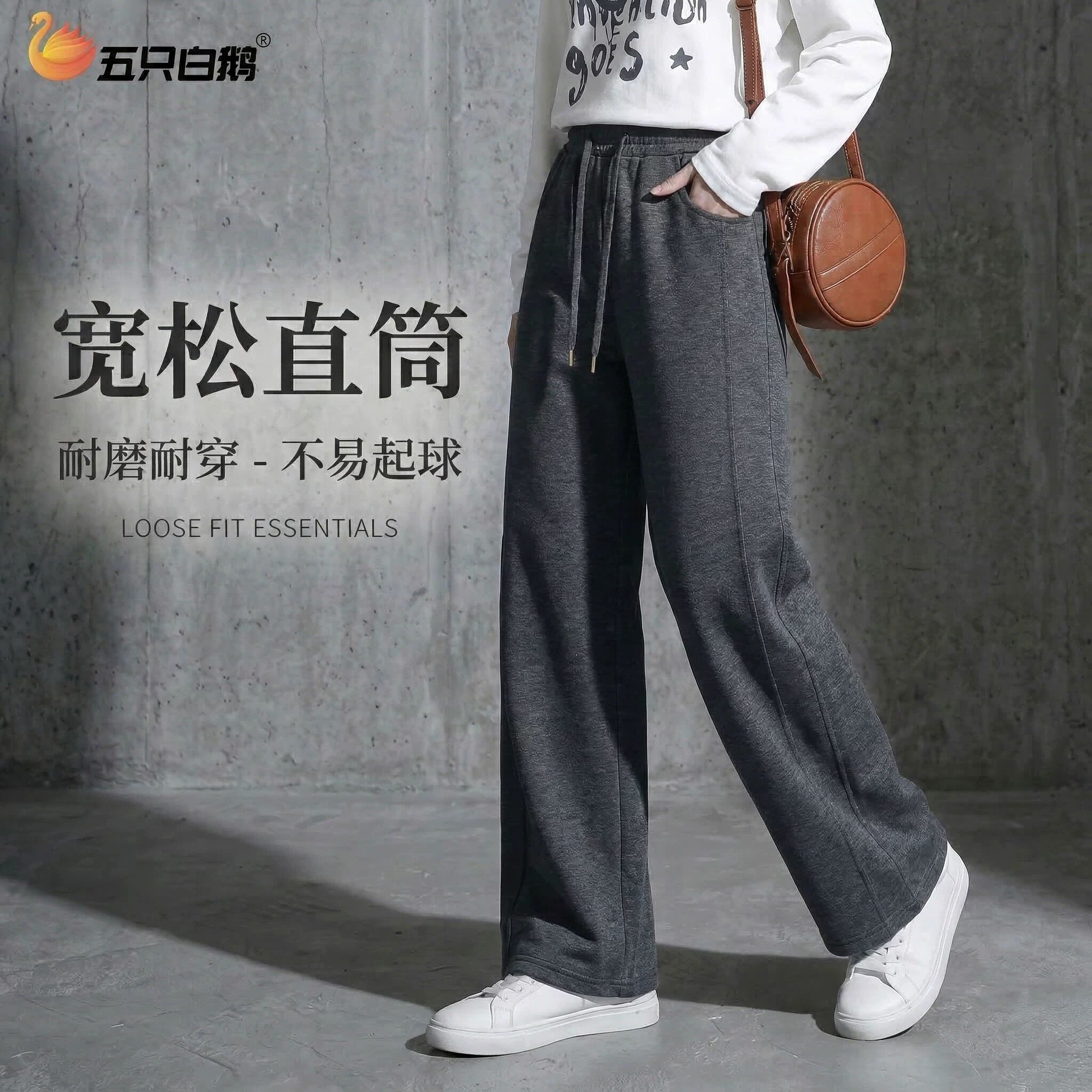 【春夏薄款】2026年新款五只白鹅樱花裤钛金棉免熨抗皱休闲直筒裤
