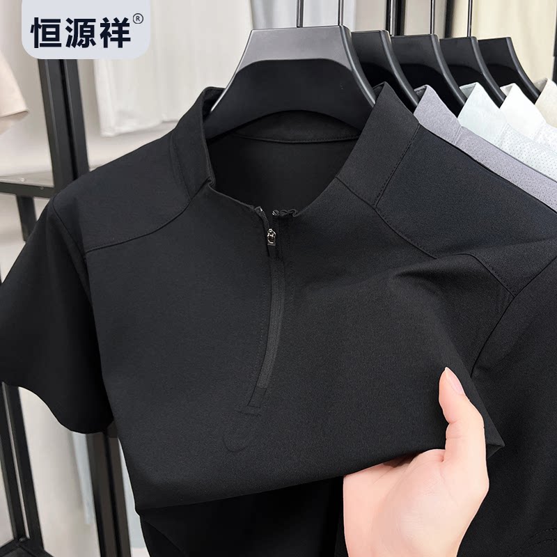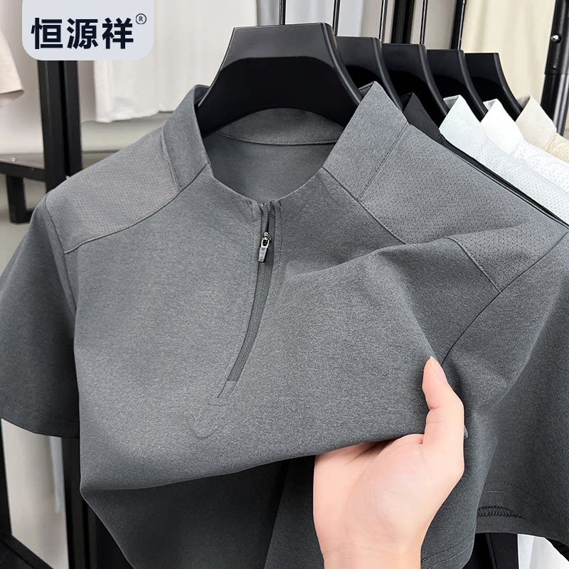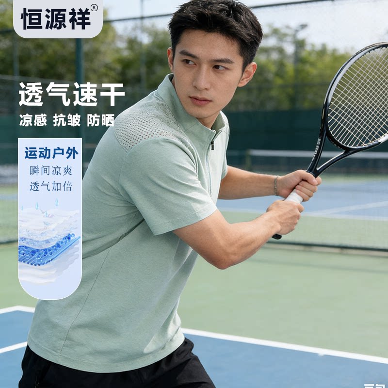 恒源祥男士立领Polo衫透气速干凉感短袖T恤防晒抗皱百搭运动短袖