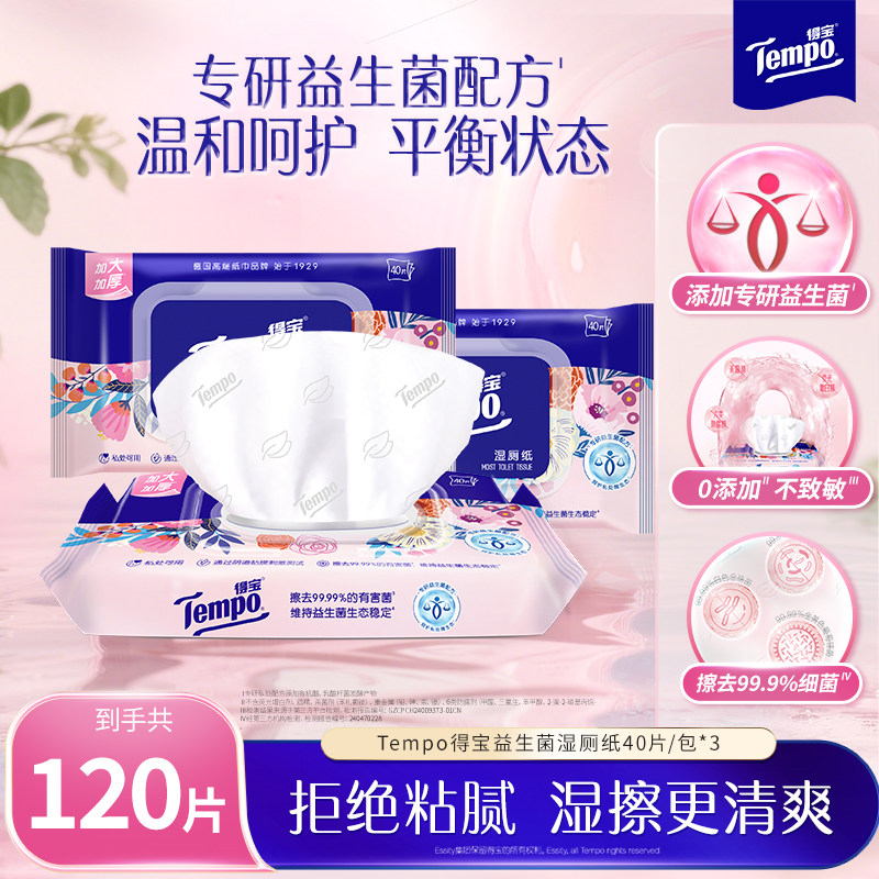得宝戴珍珠耳环的少女湿巾8片18小包/益生菌湿厕纸40抽3包K