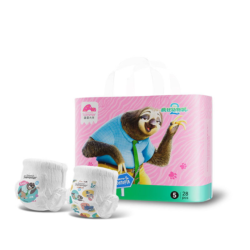 盛夏光年迪士尼疯狂动物城系列腰贴型婴儿纸尿裤拉拉裤,可爱卡通设计,柔软亲肤,吸水性强,宝宝舒适不闷热,呵护宝宝娇嫩肌肤!全方位呵护不易勒红印,超柔记忆护围,多重防漏守护。