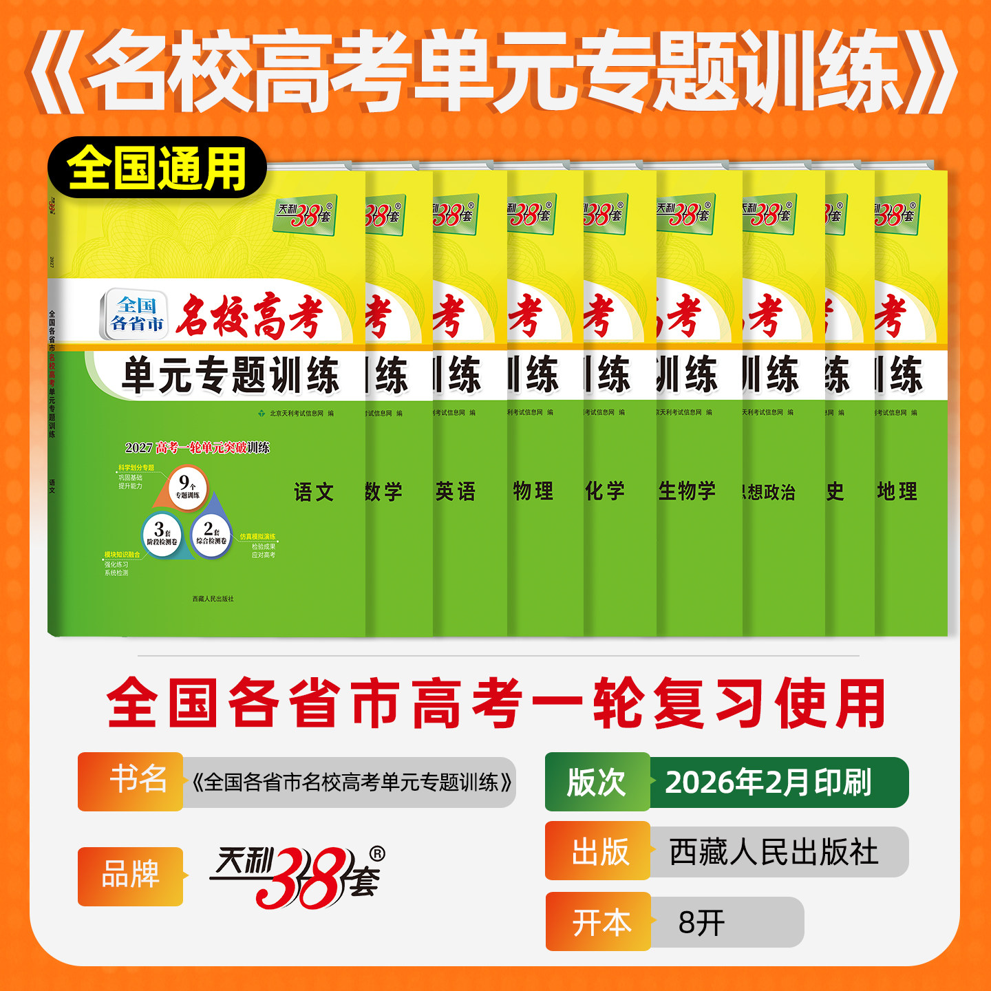 【赠答案详解,全.国通用】2027天利38套名校高考单元专题测试卷,9个专题训练+3套阶段检测卷+2套综合检测卷,科学划分专题,巩固基础,提升能力,高考必备一轮单元突破训练册!