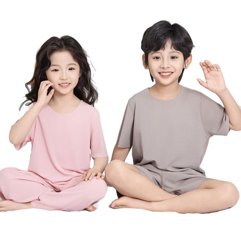 宽松无痕冰丝材质,透气舒适,适合夏季穿着,儿童两件套,短袖设计,居家穿着更自在!