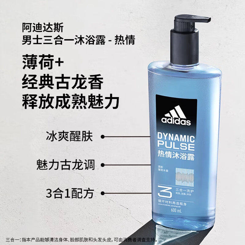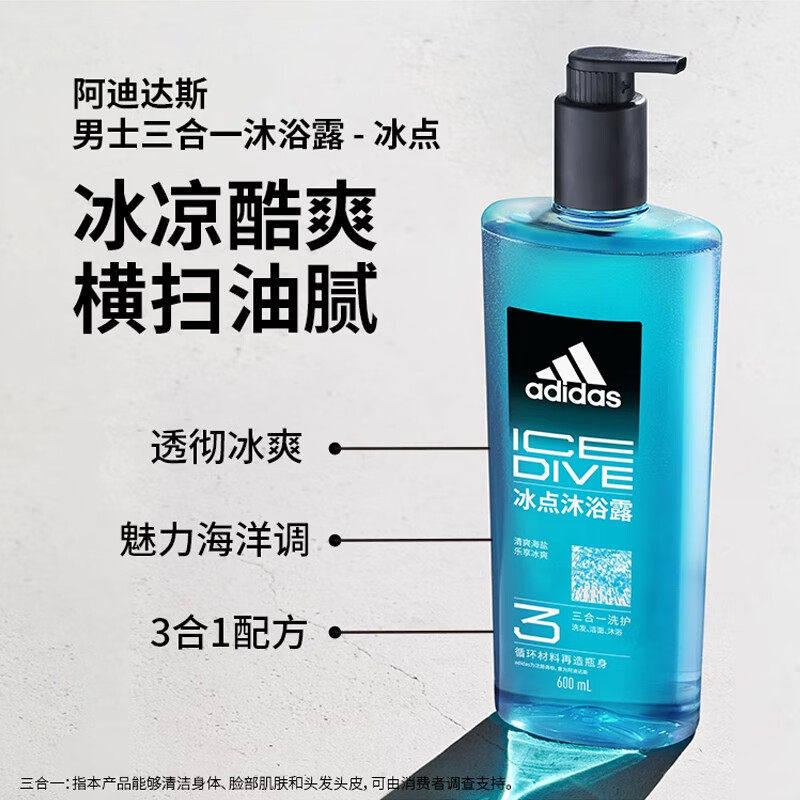 阿迪达斯Adidas男三合一沐浴露热情冰点冰爽醒肤游泳去氯组合1.2L