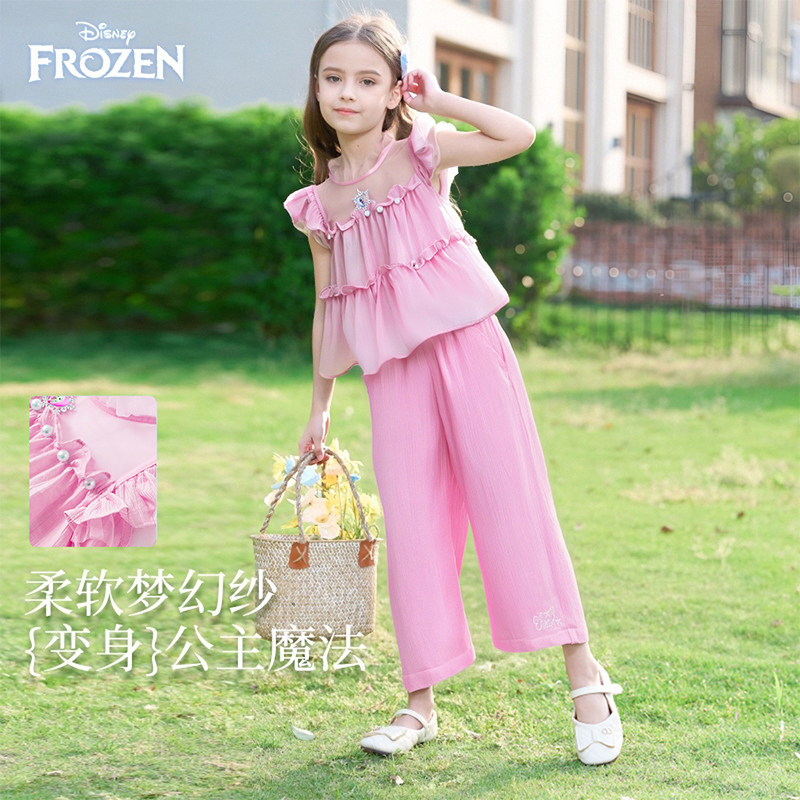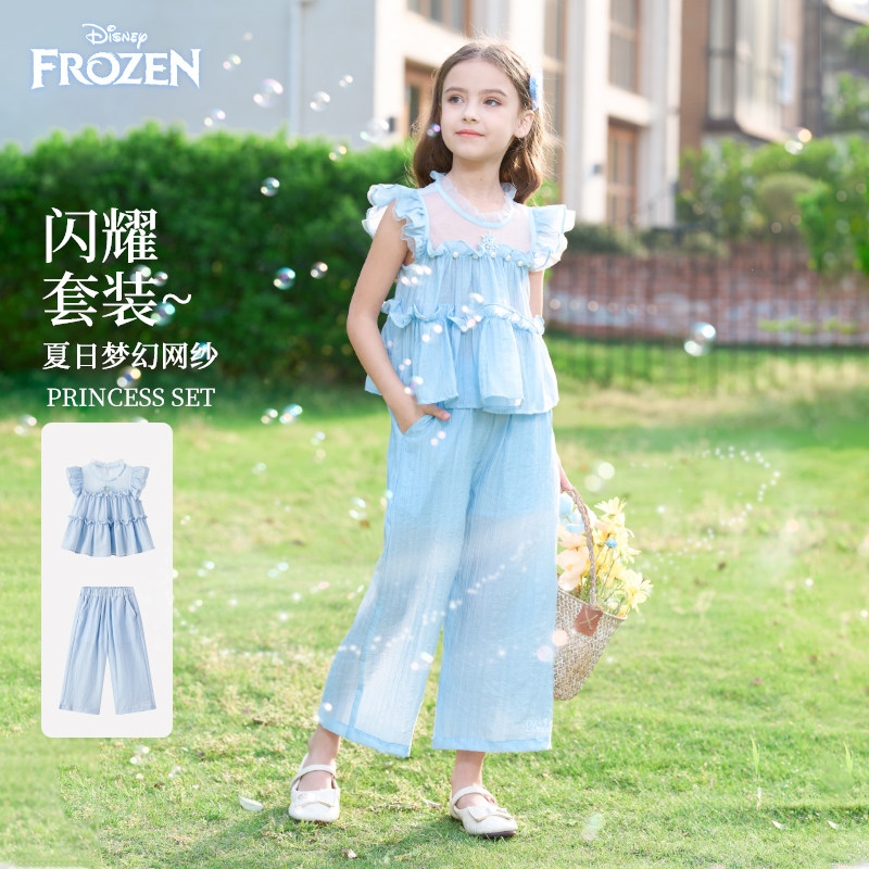 48¥ HU293 GSSb5Vq7dIg¥ https://m.tb.cn/h.imOiIyy 迪士尼童装艾莎公主女童套装2026夏季新款儿童洋气天丝短袖裤子女