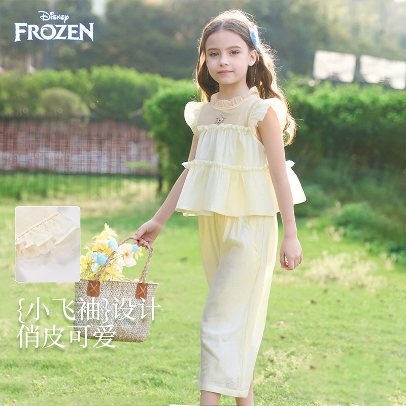 迪士尼女童天丝公主袖短袖套装夏