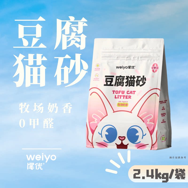 尾优豆腐猫砂2.4kg牧场奶香高效除臭0甲醛0黄曲霉素低尘猫砂融水