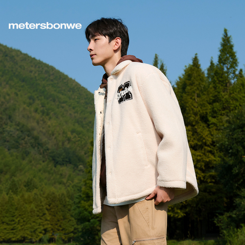 美特斯邦威夹克外套男春季新款百搭休闲翻领羊羔绒宽松落肩宽松衣