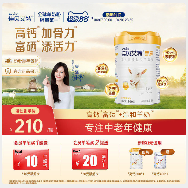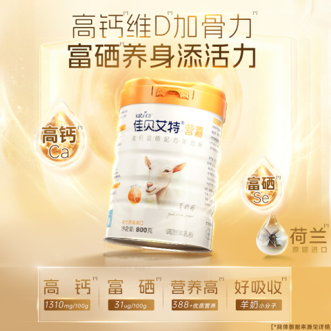 佳贝艾特荷兰原罐进口羊奶粉,100%纯化脱膻工艺+高钙富硒配方,温和好吸收,中老年营养更安心~比专柜省超百元,每日一杯,补钙护硒双效加持!