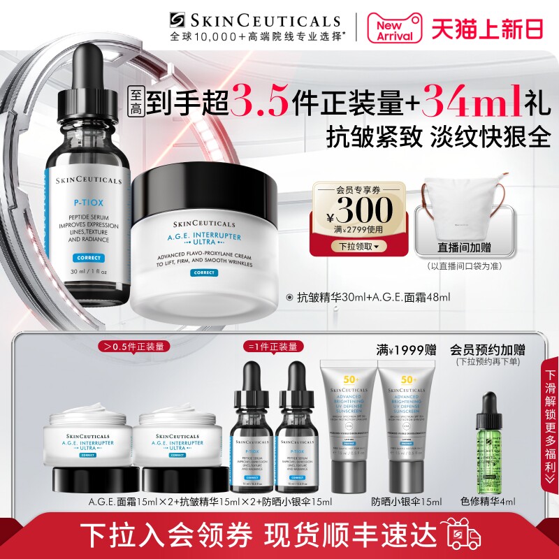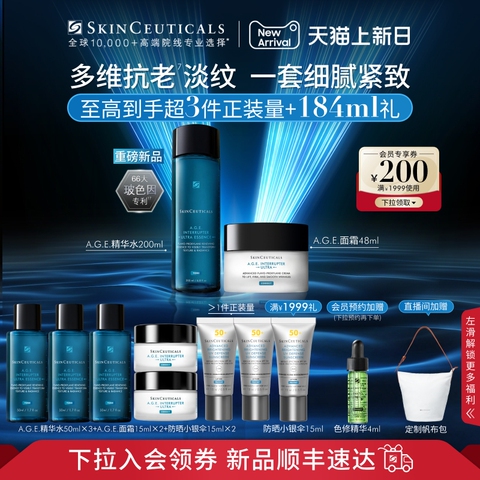 下单加赠AGE精华水50ml*3+AGE面霜15ml*2+防晒小银伞15ml*2 修丽可官旗•AGE精华水200ml+AGE面霜48ml (瞄准第三个选项) 抗老王炸!核心成分双buff,抗老抗糖一步到位! 肤感在线,吸收快不粘腻!敏感肌也能放心用