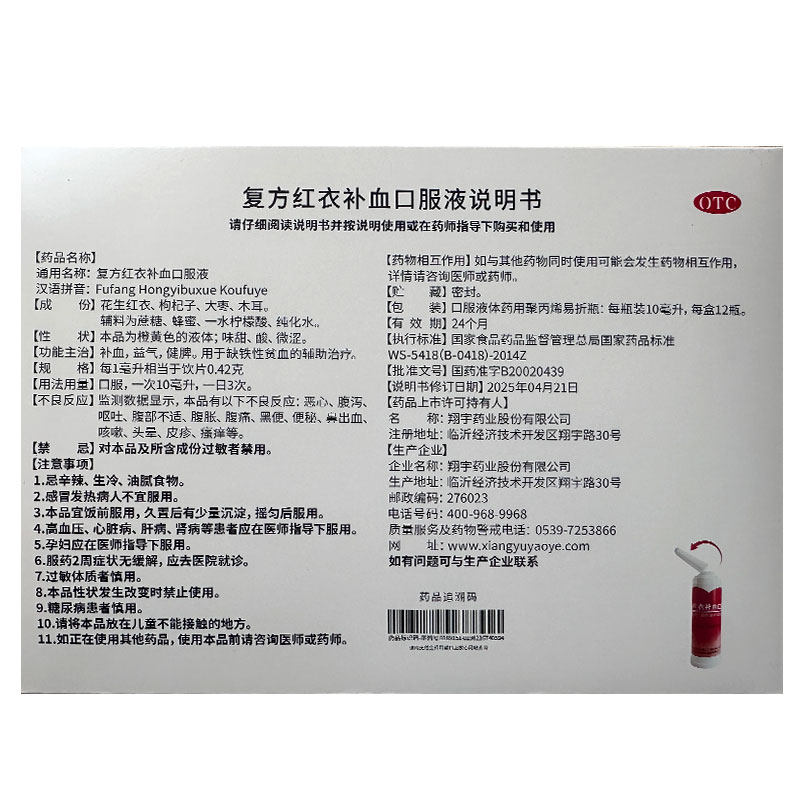 翔宇复方红衣补血口服液,专为补血益气健脾打造!OTC认证,科学配方,改善气血不足。轻松补气血,唤醒好气色,日常调理、产后/术后恢复都适用。10ml*12瓶便携装,喝出红润健康,给身体满满元气!