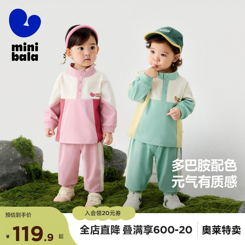 【户外风】迷你巴拉巴拉男童女童春秋长袖套装儿童复古洋气两件套