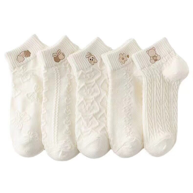 夏季薄款卡通刺绣短筒袜中筒袜女袜可爱图案休闲吸湿排汗纯色船袜