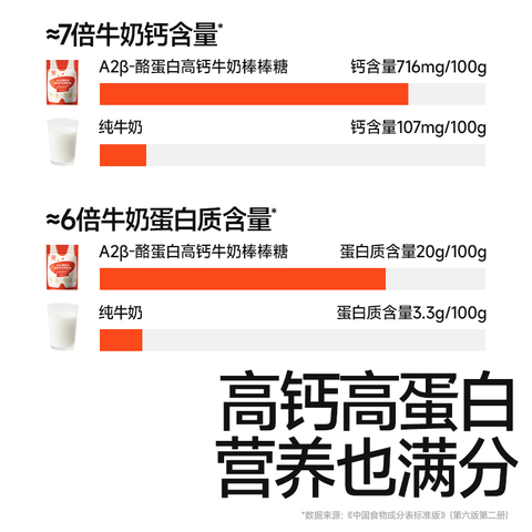 新西兰进口奶源,大于90%全脂奶粉,高钙高蛋白配方,健康营养不含添加剂,有助于骨骼和牙齿发育,可爱卡通造型,宝贝咬一咬,咀嚼更有力~