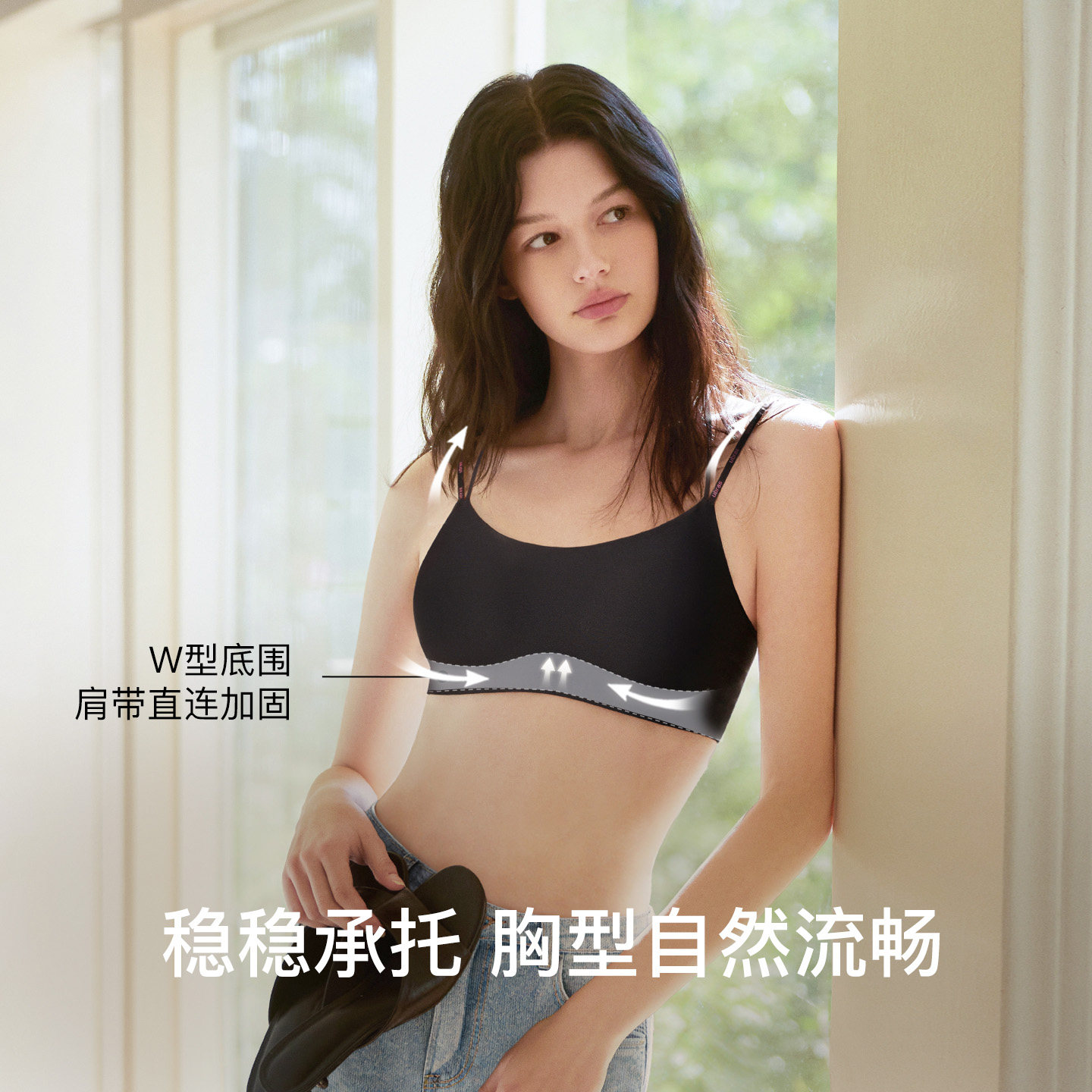 粉底肤宽肩带文胸隐形无痕内搭