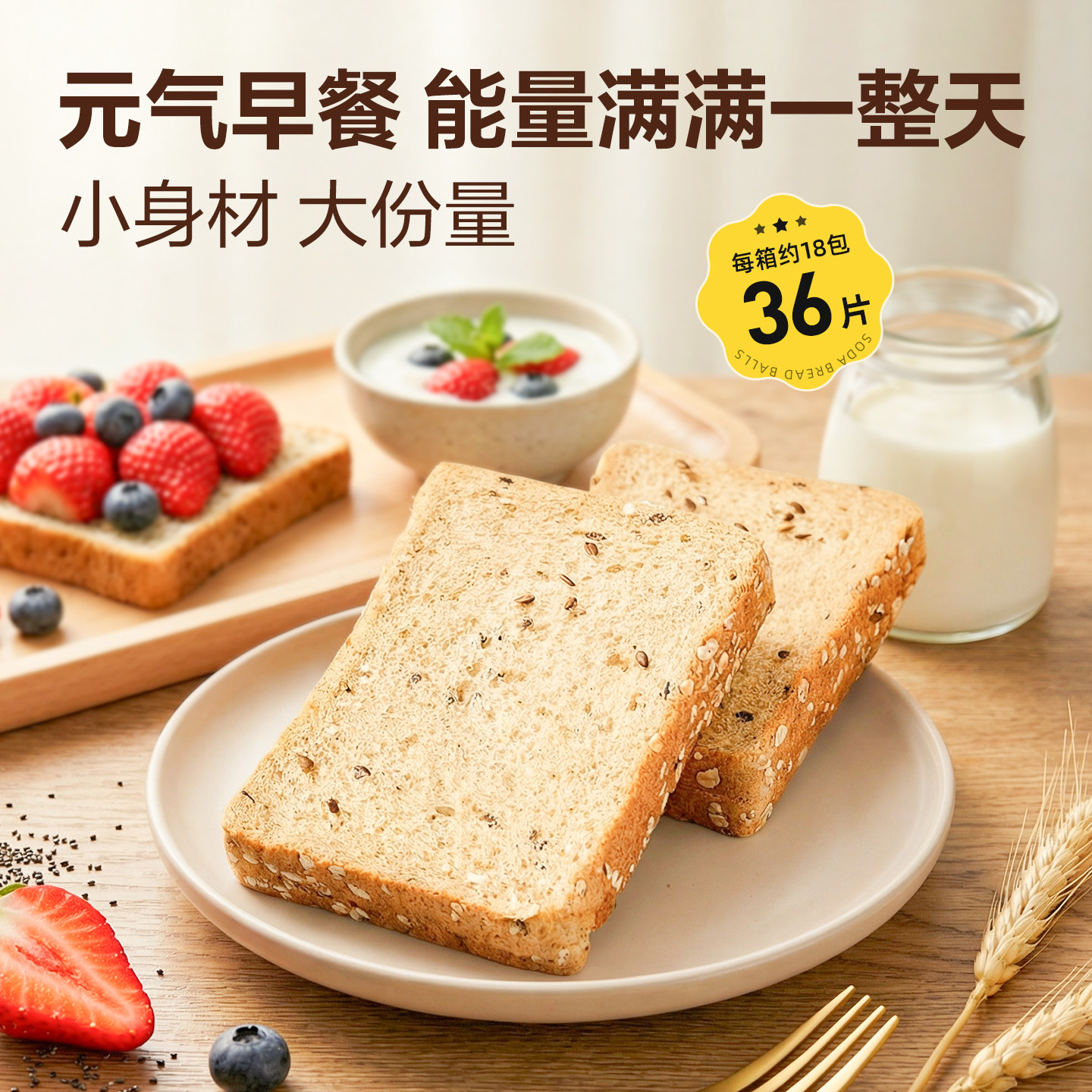 良品铺子亚麻籽燕麦吐司全麦900g