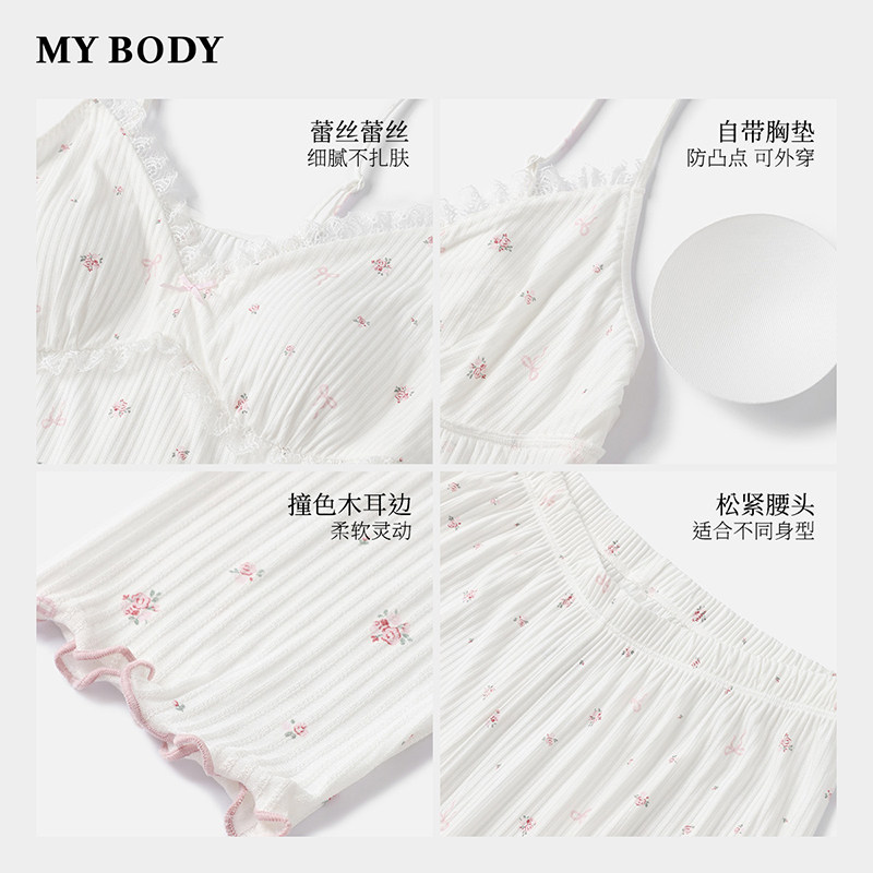 商场同款MYBODY2026春季新款睡衣女长袖V领吊带开衫三件套家居服
