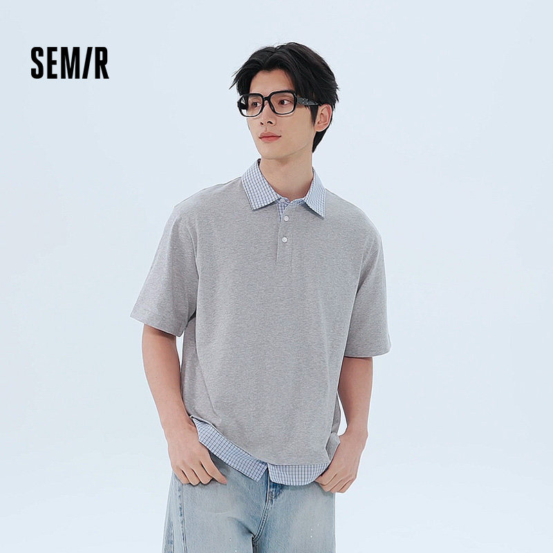 王安宇同款森马POLO衫男女夏假两件拼接26新款衬衫半开襟针织上衣