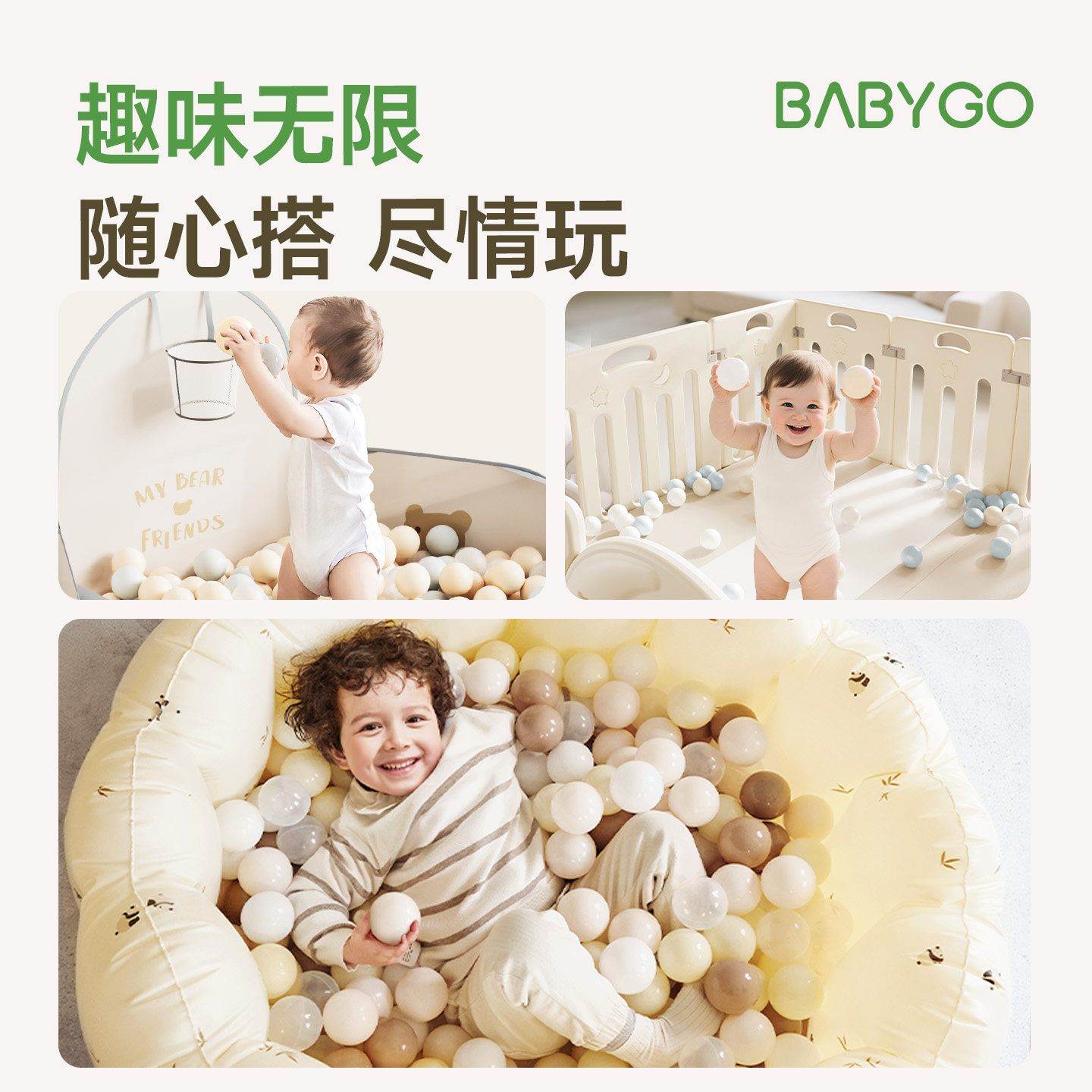 BABYGO海洋球池室内,婴儿可啃咬波波球弹力婴儿童玩具加厚安全无味