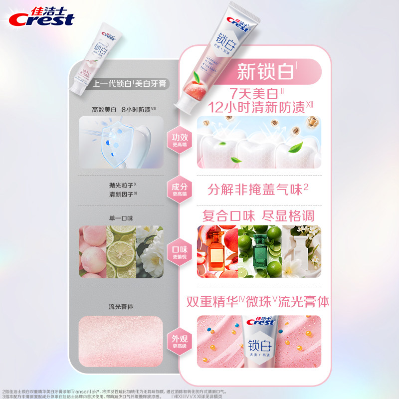 【清新美白】佳洁士双色锁白牙膏成人家庭装口气香氛减少牙渍去黄
