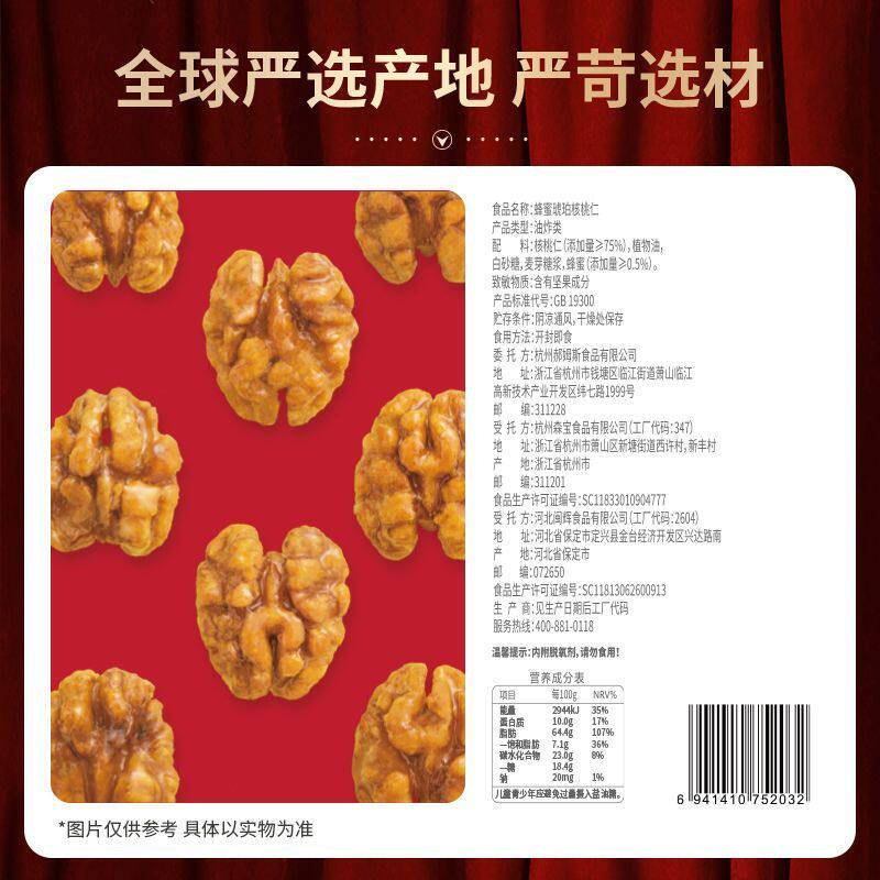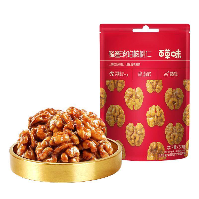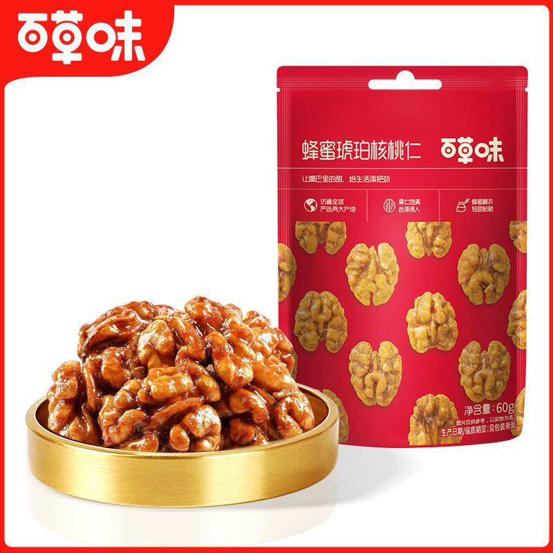 百草味蜂蜜琥珀核桃仁60g坚果核桃袋装酥脆饱满小零食【热卖8袋】