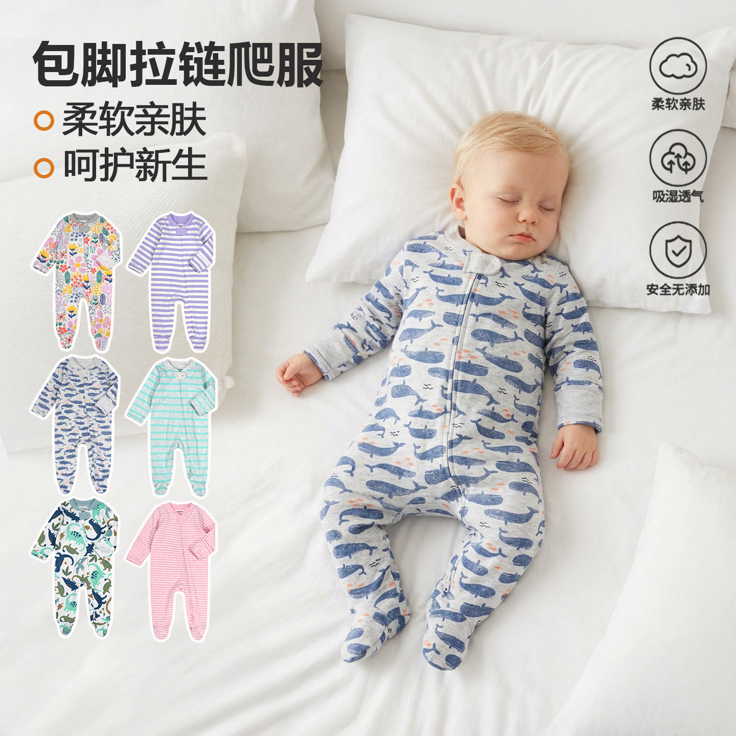 79¥ MF278 vZ9n54J70ZC¥ https://m.tb.cn/h.inJb22b 春秋四季款小月龄宝宝新生儿纯棉拉链包脚连体衣连脚爬服婴儿睡衣