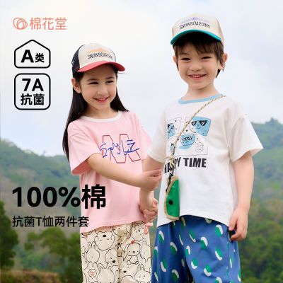 【两件装】棉花堂儿童短袖T恤男童夏季纯棉女童抗菌小童A类透气潮