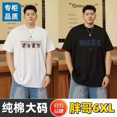 100%纯棉80-300斤港风大码短袖t恤男夏季新款宽松百搭青年半截袖