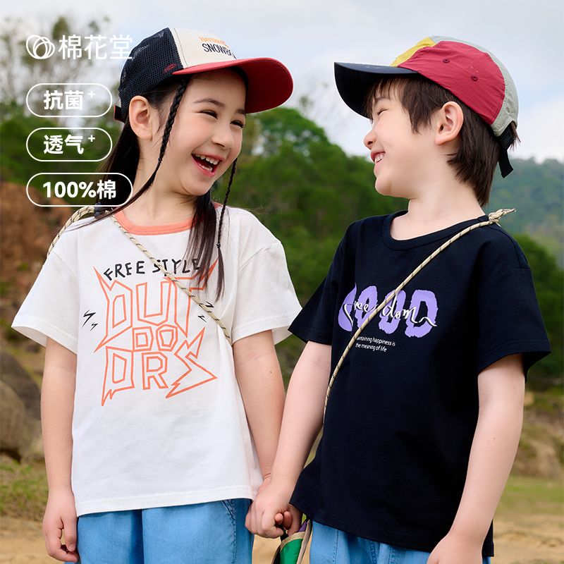 【两件装】棉花堂儿童短袖T恤男童夏季纯棉女童抗菌小童A类透气潮
