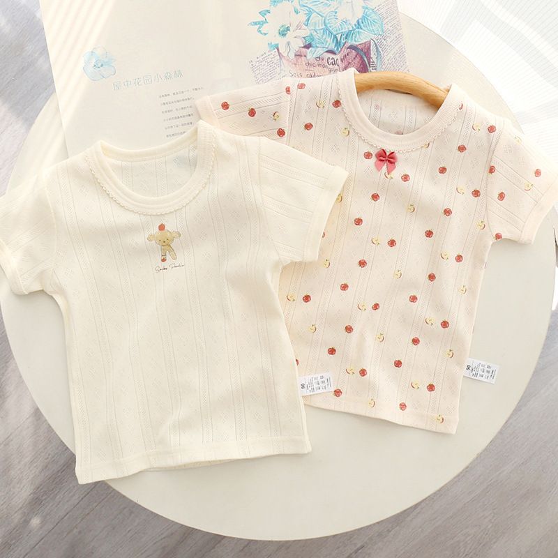夏季日系女童短袖上衣 纯全棉a类儿童宝宝网眼半袖t恤家居可外穿