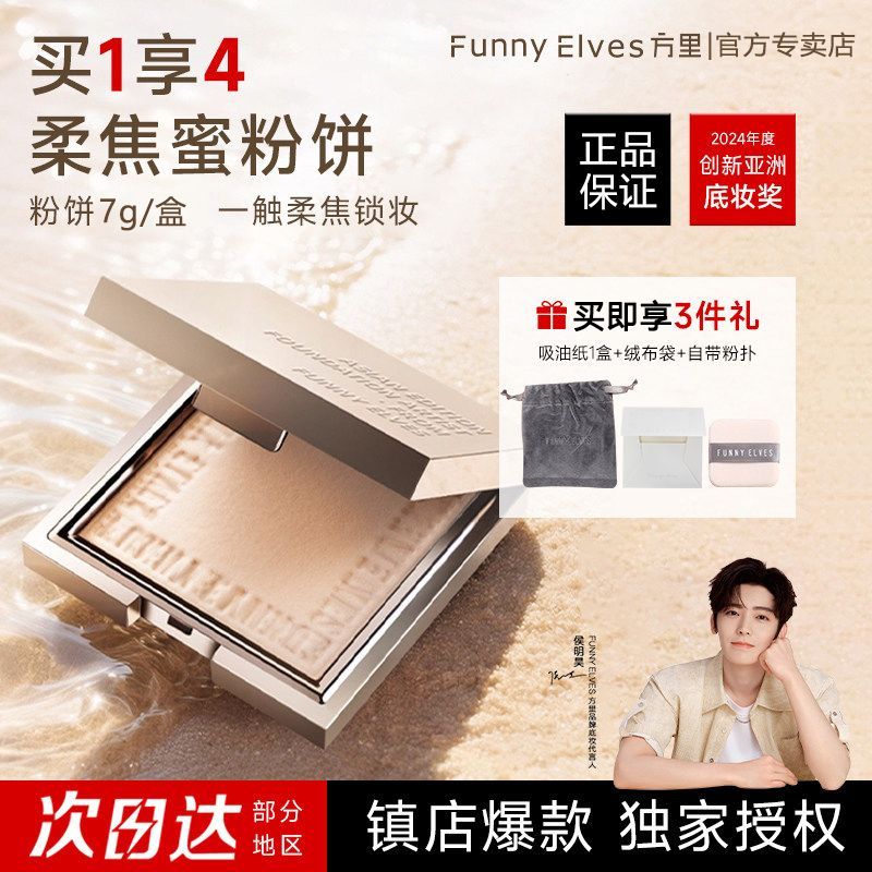 Funnyelves方里粉饼柔焦蜜粉饼控油定妆干湿感光持久遮瑕毛孔散粉