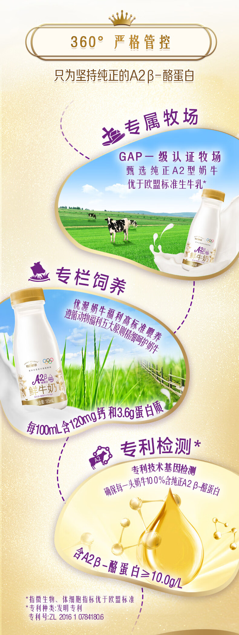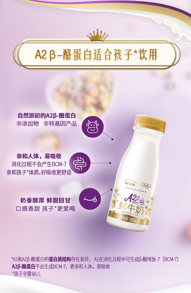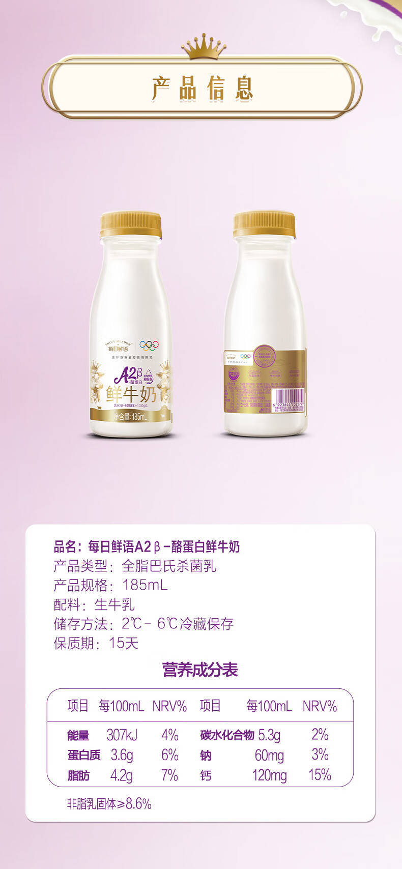 每日鲜语A2β-酪蛋白低温鲜奶巴氏杀菌乳A2β-185ml*6