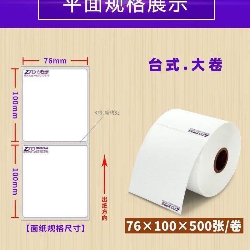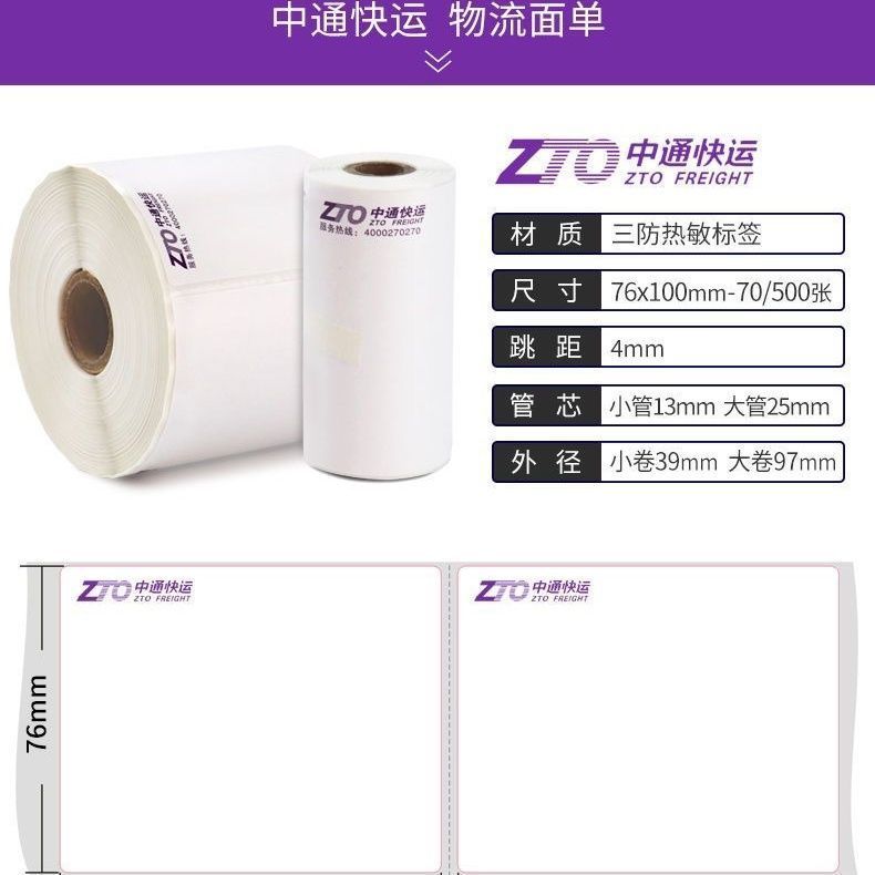 中通快运三防热敏纸物流空白子单热敏纸防冻防油电子面单76*100