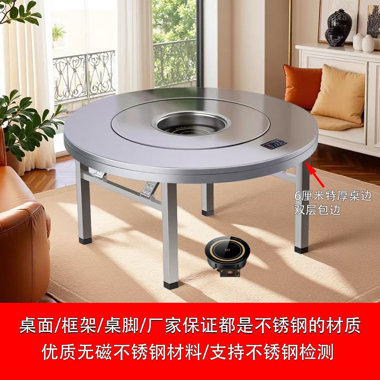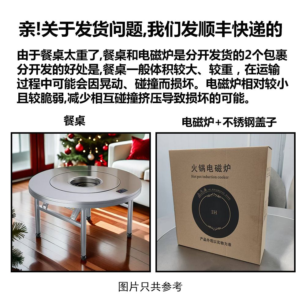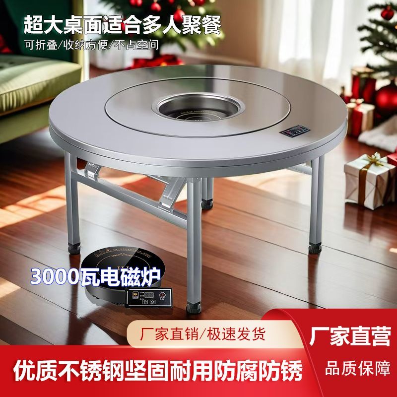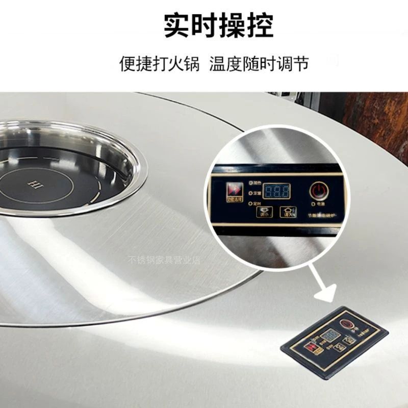 加厚不锈钢餐桌商用多功能桌子家用餐桌一体式电磁炉火锅餐圆桌子