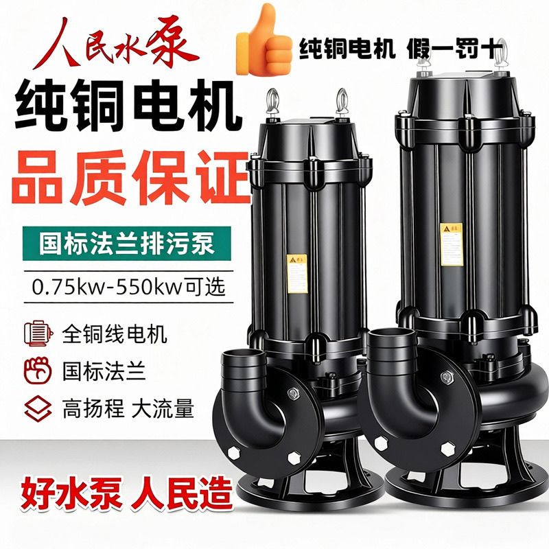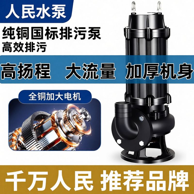 上海纯铜国标正品人民污水泵380V三相潜水排污泵单相220V家用泵
