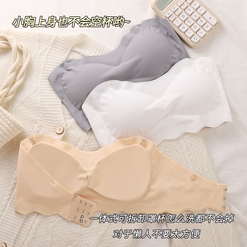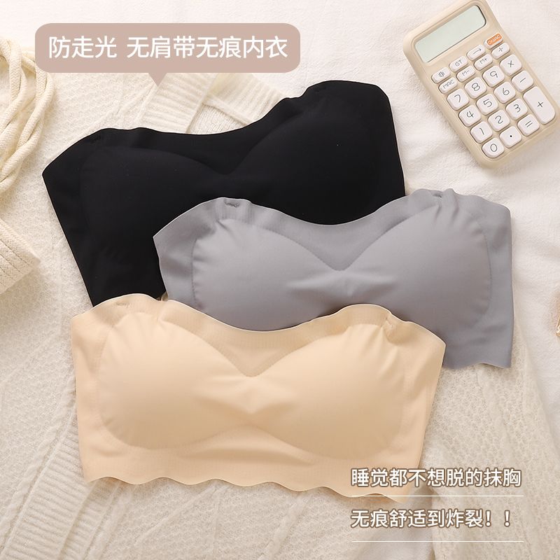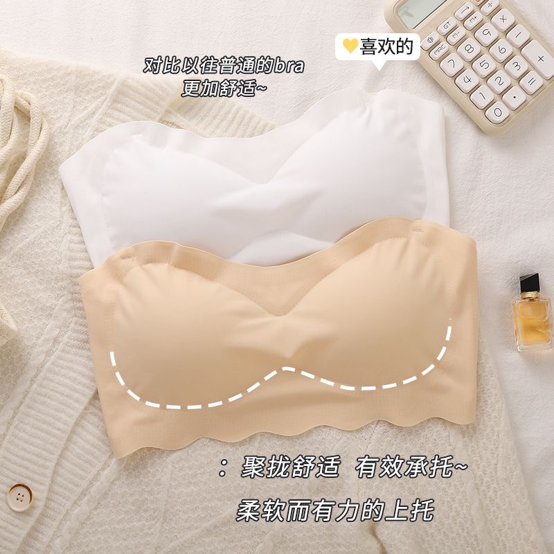 冰丝带胸垫抹胸性感裹胸防走光无肩带罩防滑内衣美背抹胸胖mm大码