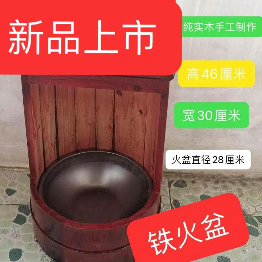 高度46公分炭火炉老人取暖炉坐式暖桶实木烘笼烤火凳子家用