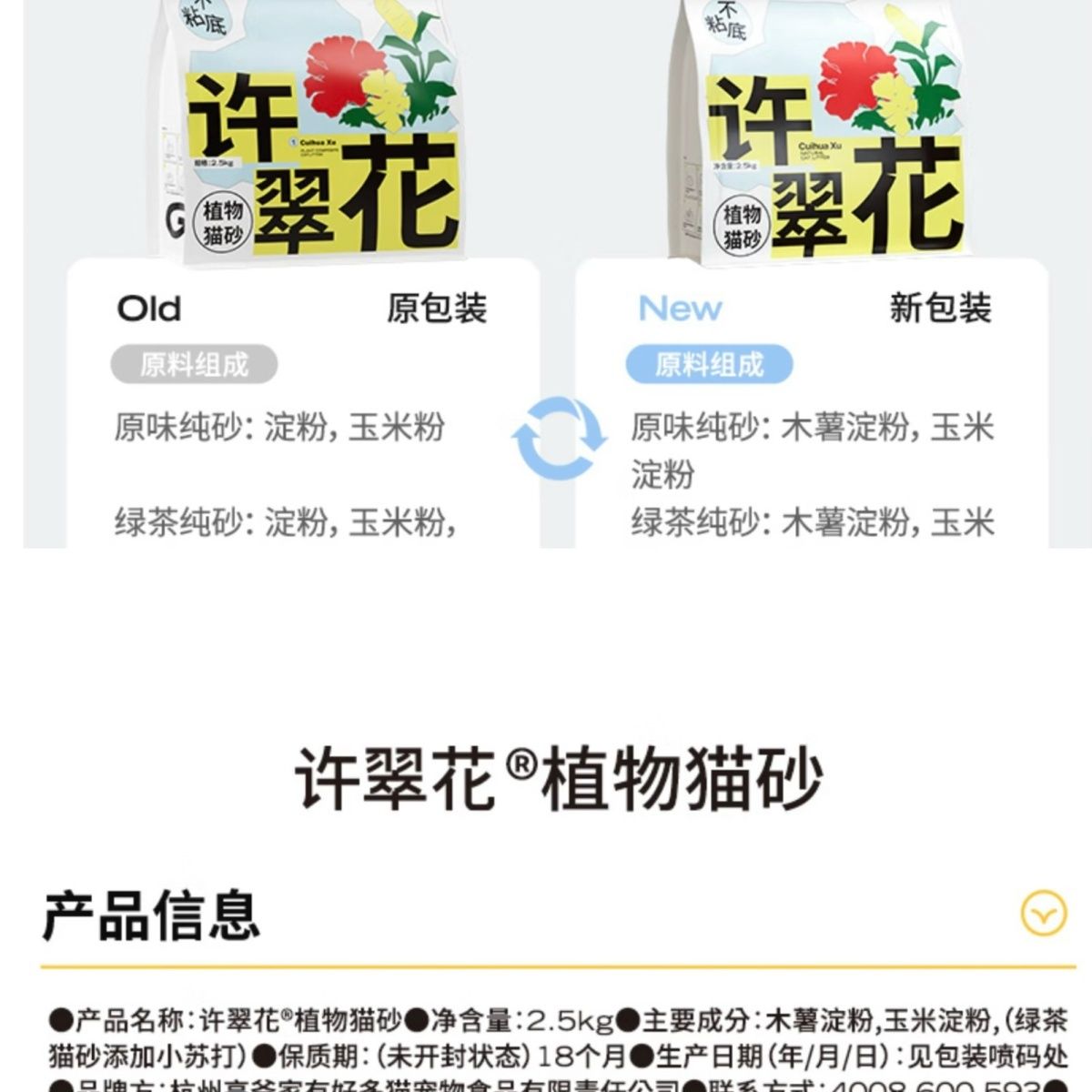 【新客优选】许翠花植物木薯猫砂纯砂不易粘底结团强除臭好【10天内发货】