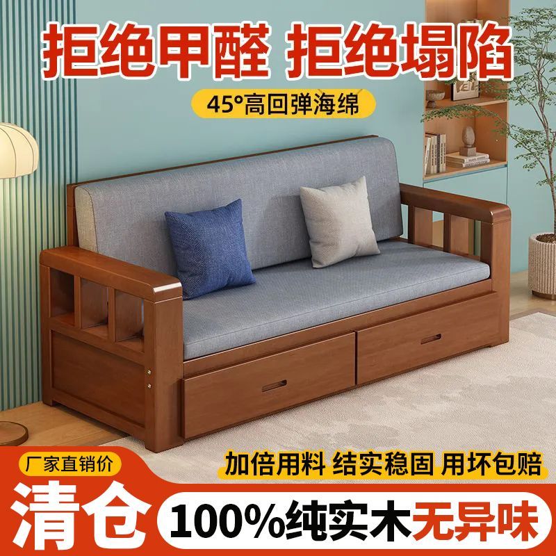 实木沙发清仓橡胶木中式现代组合冬夏两用小户型客厅可拆洗多人