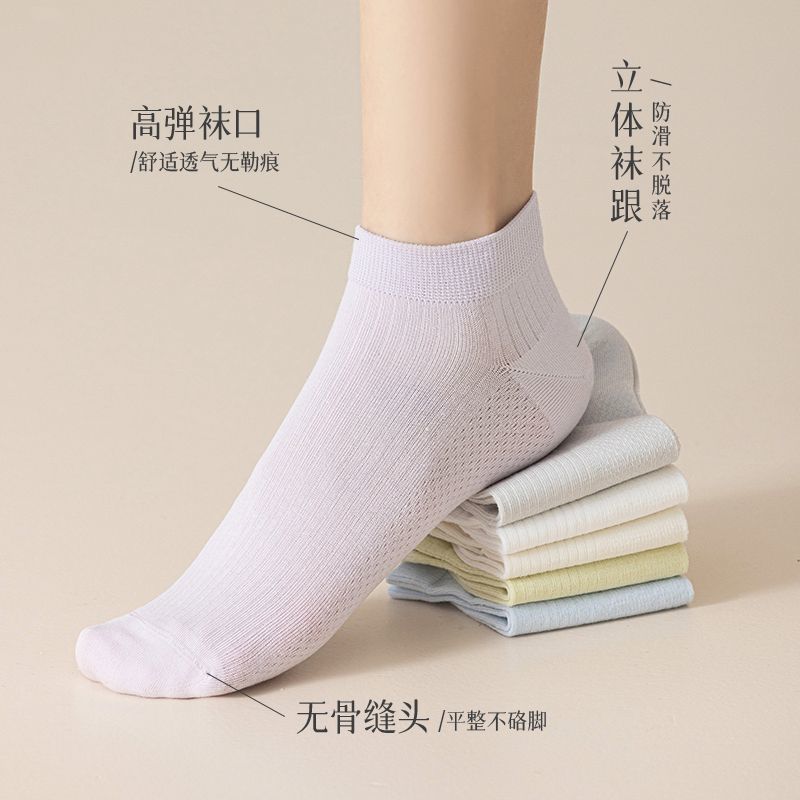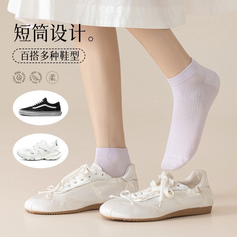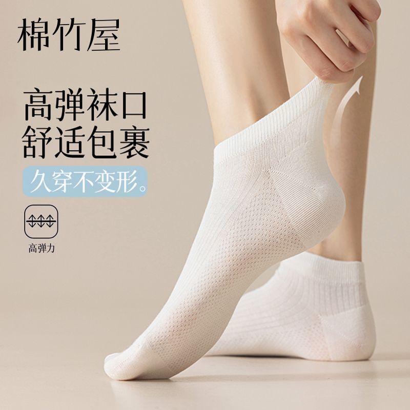 棉竹屋袜子女短袜春夏抗菌防臭吸汗船袜不掉跟纯色薄款透气女士